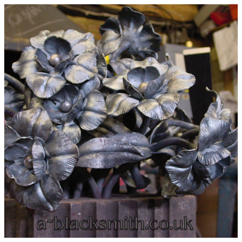 Hot forged from solid sections of Mild Steel, then Hot Zinc Sprayed to catholically protect the metal, you can see we have coloured this sign extensively. The paint was sealed with a lacquer like sealer so the finish was a uniformly weather resistant. We often colour village signs in this way.