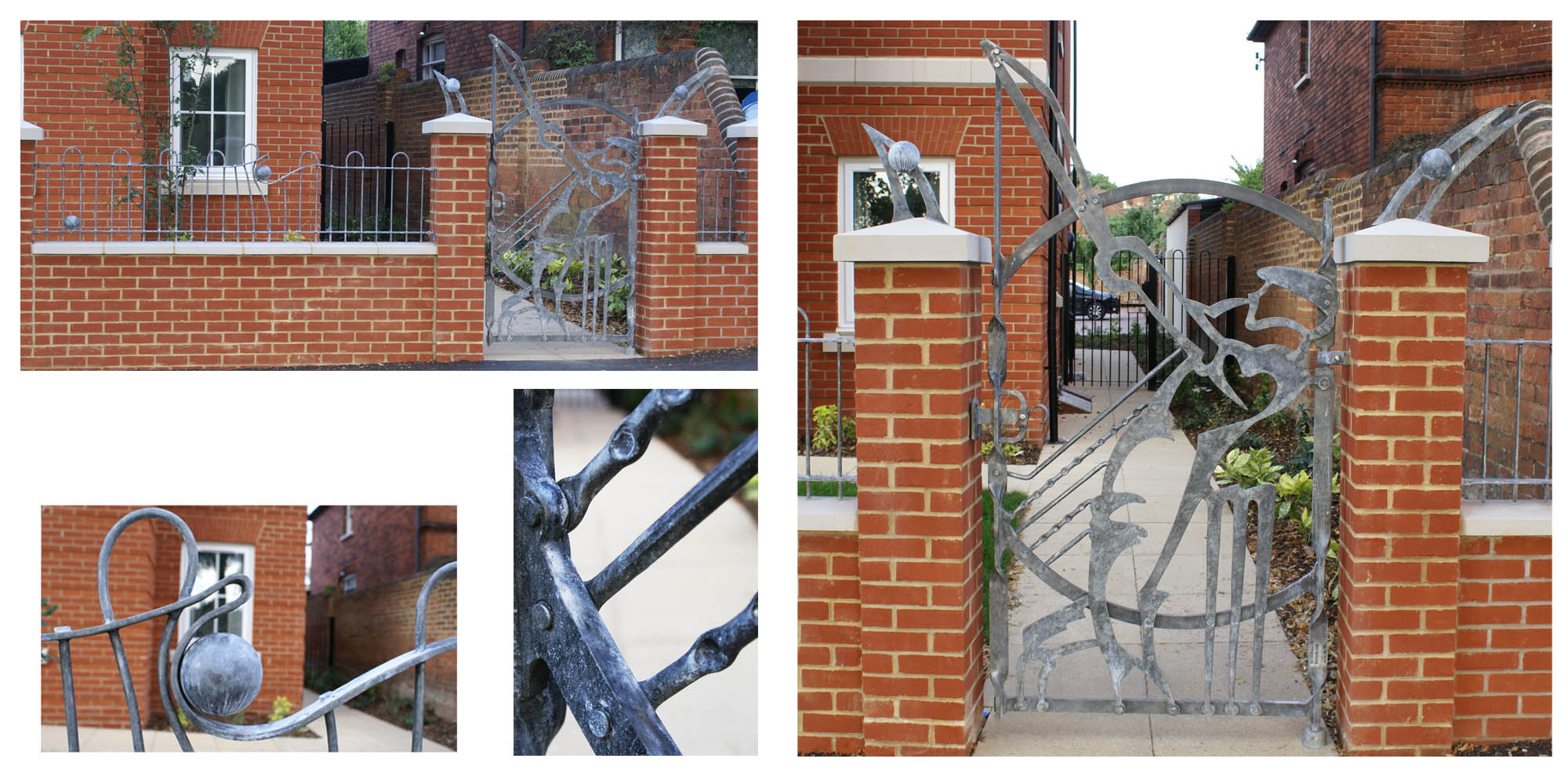 The Batsman gate and railings was commissioned by the Radian Group in early 2012 and installed at the end of June 2012. The Public Artwork commission made up Radian’s S106 planning obligation linked a new housing development opposite Surrey’s Cricket Ground in Guildford, Surrey. Radian had the foresight and trust to offer us an open brief regards to design. Radian gave us a sensible completion date which we dutifully met with time to spare. I’d like to thank Radian’s senior project manager Rob Cummins for the opportunity to create this work and their builders Leadbitter Ltd. for their support enabling us to deliver the project on time and within budget.