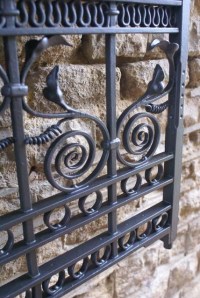 These gates are very special, they are in an Arts & Crafts style, expertly balanced and we suspect they were originally commissioned for a civic building, church or public office. There is an enormous level of detail, demanding top level forging skills. Interestingly and in the spirit of Arts & Crafts, the Artisan was only too aware of his excellent work and deliberately allowed ‘schoolboy’ errors in the setting the piece. As a craftsman I can easily identify what’s going on, the technical execution is so expert, it makes a joke of the deliberate errors, I suspect the Blacksmith responsible, might have hoped a Peer will see through his fakery, as I would in his situation. Well, I have!